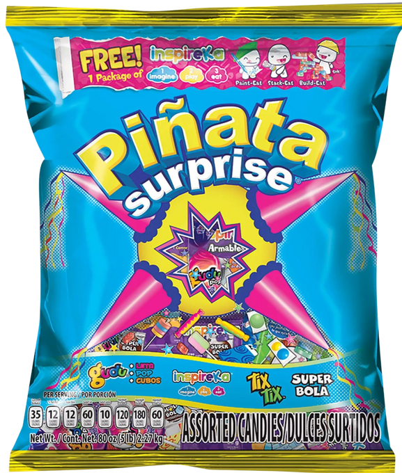 Ingredients: Gudupop Multisabor: Artificially Flavored Soft Candy Lollipop Ingredients: Corn Syrup Sugar Contains 2% of Less of: Vegetable Oil (Palm Oil), Citric Acid, Glyceryl Monostearate, Soybean Lecithin, Soybean Oil, Natural and Artificial Strawberry and Lime-Lemon Flavor, F&C Yellow 5, FD&C Red 40, FD&C Yellow 6, FD&C Blue 1, BHT, (Antioxidant), Tix Tix Fizz: Sour Chewing Gum Artificially Flavored, Sugar, Dextrose, Glucose, Chewing Gum Base, (Contains Titanium Dioxide Color and BHT Antioxidant), Citric Acid, Contains 2% or Less of: Gum Arabic, Corn Starch, Bicarbonate, Natural and Artificial Fruits Flavors (Strawberry, Grape, Orange, Lemon, Pineapple and Fruit Mix), Glycerine Shellac, Silicon Dioxide, Vegetable Oil (Coconut and/or Corn) FD&C Yellow 6, FD&C Blue 1, FD&C Blue 2, FD&C Red 40 Acetic Acid, Super Bola: Artificially Flavored Chewing Gum, Sugar, Dextrose, Corn Syrup, Chewing Gum Base Contains BHT as Antioxidant and Titanium Dioxide as Color, Contains 2% or Less of: Natural and Artificial Flavors, Citric Acid, Glycerin, Vegetable Oil (Corn Oil, and/or Coconut Oil), Shellac, Carnauba Wax, FD&C Yellow 5, Bees Wax, Folic Red 40, Folic Blue 1, FD&C Yellow 6, Gudu Leta: Artificially Flavored Hard Candy Lollipop with Chewing Gum Center, Sugar, Corn Syrup, Chewing Gum Base Contains Titanium Di Oxide Color and BHT as Antioxidant, Contains 2% or Less of Citric Acid, Lactic Acid, Natural and Artificial Flavors, Malic Acid, FD&C Blue 1, Potassium Citrate, Mango Flavor: Sugar, Corn Syrup, Chewing Gum Base Contains Titanium Dioxide Color and BHT as Antioxidant, Contains 2% or Less of Citric Acid, Lactic Acid, Malic Acid, Natural and Artificial Flavors Folic Yellow 5, Potassium Citrate, Folic Yellow 6, Cherry Flavor: Sugar, Corn Syrup, Chewing Gum Base (Contains Titanium Dioxide Color and BHT as Antioxidant), Contains 2% or Less of: Citric Acid, Lactic Acid, Malic Acid, Natural and Artificial Flavor, FD&C Red 40, Potassium Citrate, Gudu Cubos: Artificially Flavored Soft Candy, Blueberry-Cherry Flavor: Glucose, Sugar, Vegetable Palm Oil, Contains 2% or Less of: Citric Acid, Glyceryl, Monostearate, Gelatin, Artifical Flavors, Soy Bean Lecithin, FD&C, Red 40, FD&C Blue 1, BHA (Antioxidant), Contains Soy Ingredients, Raspberry-Blueberry Flavor: Glucose, Sugar, Vegetable Palm Oil, Contains 2% or Less of: Citric Acid Artificial Flavors, Glyceryl Monostearate, Gelatin, Soybean Lecithin, FD&C 40, FD&C Blue 1, Contains Soy Ingredients, Inspireka: Inspireka Armable, Artificially Flavored Dextrose Candy, Vanilla Flavor: Dextrose, Contains 2% or Less of: Maltodextrain, Citric Acid, Magnesium Stearate, Magnesium Palmitate, Natural and Artificial Flavor, FD&C Yellow 5 Aluminium Lake, Banana Flavor: Dextrose, Contains 2% or Less of: Maltodextrin, Citric Acid, Magnesium Stearate, Magnesium Palmitate, Natural and Artificial Banana and Cream Flavors, FD&C Yellow 5 Aluminium Lake, Mango Flavor: Dextrose, Citric Acid, Contains 2% or Less of: Maltodextrin Magnesium Stearate, Magnesium Palmitate, FD&C Yellow 5 Aluminium Lake, Natural and Artificial Flavors, EDTA (Antioxidant), Tamarind Flavor: Dextrose, Contains 2% or Less of: Citric Acid, Maltodextrin, Malic Acid, Magnesium Stearate, Magnesium Palmitate, Natural and Artificial Tamarind and Chili Flavors, Gum Acacia, FD&C Yellow 5 Aluminium Lake, FD&C Blue 1 Aluminium Lake, FD&C Red 40 Aluminium Lake, Chamoy Flavor: Dextrose, Contains 2% or Less of: Malic Acid, Maltodextrin, Citric Acid, Magnesium Stearate, Magnesium Palmitate, FD&C Red 40 Aluminium Lake, Gum Acacia, Natural and Artificial Chamoy and Chili Flavors, Raspberry Flavor: Dextrose, Contains 2% or Less of: Maltodextrin, Citric Acid, Malic Acid, Magnesium Stearate, Magnesium Palmitate, FD&C Blue 1 Aluminium Lake, Natural and Artificial Flavors, Cantaloupe Flavor: Dextrose, Contains 2% or Less of: Citric Acid, Maltodextrin, Magnesium Stearate, Magnesium Palmitate, Manithol, Natural and Artificial Flavor FD&C Yellow 6 Aluminium Lake, Folic Red 40 Aluminium Lake, Orange Flavor: Dextrose, Citric Acid, Contains 2% or Less of: Maltodextrin, Magnesium Stearate, Magnesium Palmitate, Folic Yellow 6 Aluminium Lake, Natural and Artificial Flavors, Inspireka Konstro-Y, Artificially Flavored Dextrose Candy, Strawberry Flavor: Dextrose, Contains 2% or Less of: Citric Acid, Corn Syrup Solids, Malic Acid Magnesium Stearate, Magnesium Palmitate, Artificial Flavors, FD&C Red 40 Aluminium Lake, Orange Flavor: Dextrose, Citric Acid, Contains 2% or Less of: Corn Syrup Solids, Magnesium Stearate, Magnesium Palmitate, Artificial Flavors, Folic Yellow 6 Aluminium Lake, Blueberry Flavor: Dextrose, Contains 2% or Less of Citric Acid, Corn Syrup Solids, Malic Acid, Magnesium Stearate, Magnesium Palmitate, FD&C Blue 1 Aluminium Lake, Artificial Flavors, Apple Flavor: Dextrose, Contains 2% or Less of: Citric Acid, Corn Syrup Solids, Malic Acid, Magnesium Stearate, Magnesium Palmitate, Natural and Artificial Flavors, Folic Yellow 5 Aluminum Lake, Folic Blue 1 Aluminum Lake, Mango Flavor: Dextrose, Citric Acid Contains 2% or Less of: Corn Syrup Solids, Magnesium Stearate, Magnesium Palmitate, Folic Yellow 5, Aluminium Lake, Natural and Artificial Flavors, Grape Flavor: Dextrose, Citric Acid, Contains 2% or Less of: Corn Syrup Solids, Magnesium Stearate, Magnesium Palmitate, FD&C Blue 2 Aluminium Lake, FD&C Red 40 Aluminium Lake, FD&C Blue 1 Aluminium Lake, Artificial Flavors, Silicon Dioxide, Inspireka Pintafruit, Wafers and Pen Filled with Artificially Flavored Syrup, Strawberry Flavor Syrup: Water, Sugar, Maltodextrin, Corn Syrup, Contains 2% or Less of: Malic Acid, Gum Mono and Dilaurate Color, Sodium Citrate and Potasium Sorbate [Preservatives], Artificial Flavor, FD&C Red 40, Propylene Glycol, Mono and Di Laurate, Lemon Flavor Syrup: Water, Maltodextrin, Sugar, Corn Syrup, Contains 2% or Less of Malic Acid, Gum Arabic Pectin, Titanium Di Oxide Color, Sodium Citrate and Potassium Sorbate [Preservative], Artificial Flavor, FD&C