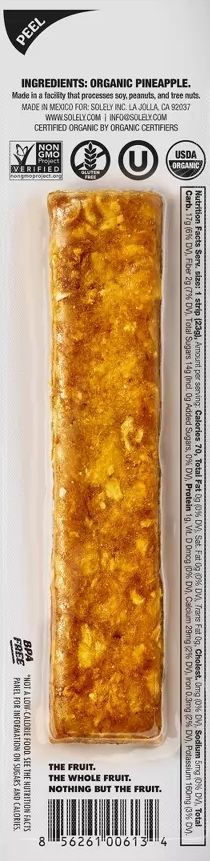 Solely Pineapple Fruit Jerky (12 CT) delivers the bold, tangy sweetness of organic pineapple in a clean, one-ingredient snack.
