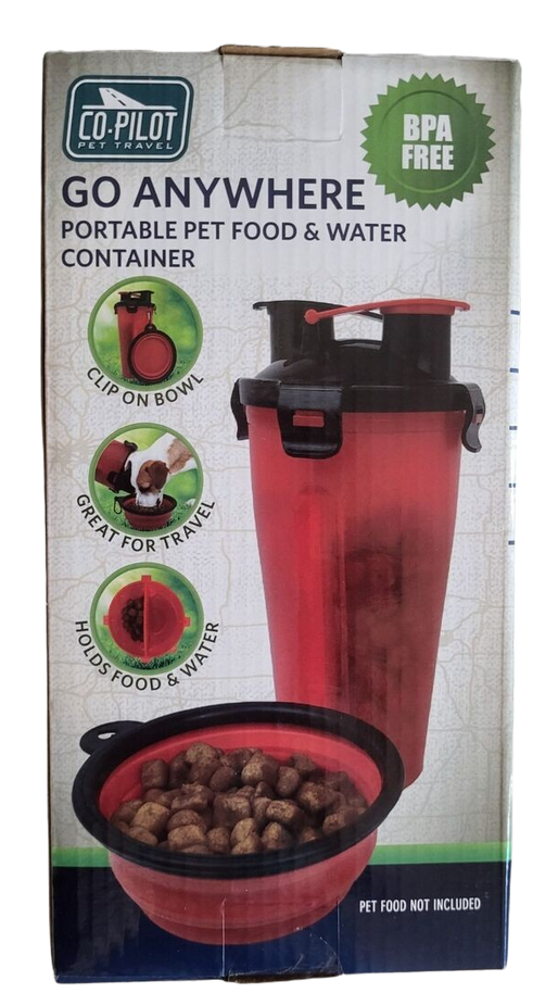 The 15-oz Portable Cat or Dog Food and Water Container is a 2 in 1 carrying device.
