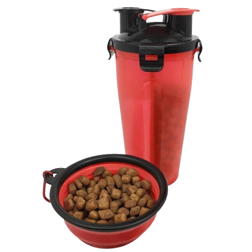 - Convenient Travel Design: Includes a dual-chamber bottle for food and water, plus a collapsible bowl that attaches to the bottle for easy carrying.
