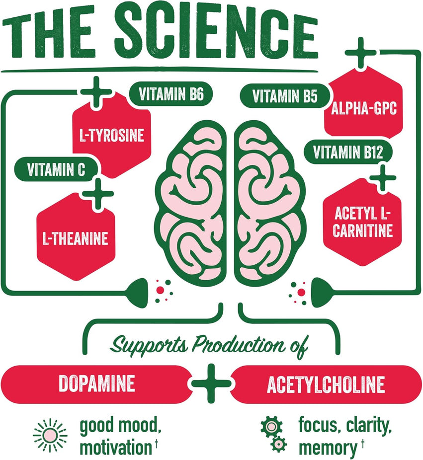 Brain Health Boost: Packed with superfoods and functional ingredients like Alpha GPC, L-Theanine, and B vitamins for focus and clarity.
