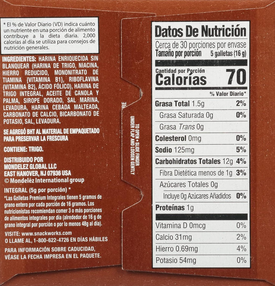 Ingredients: Unbleached Enriched Flour (Wheat Flour, Niacin, Reduced Iron, Thiamine Mononitrate (Vitamin B1), Riboflavin (Vitamin B2), Folic Acid), Whole Grain Wheat Flour, Canola Oil, Palm Oil, Refiners Syrup, Sea Salt, Baking Soda, Malted Barley Flour, Calcium Carbonate, Potassium Bicarbonate, Salt, Yeast.