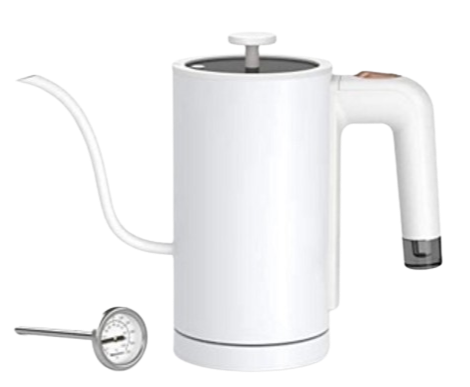 Elevate your coffee game with this premium white Willsence kettle, designed specifically for pour over coffee. The unique goose-neck spout provides superior control, allowing for a precise pour every time.