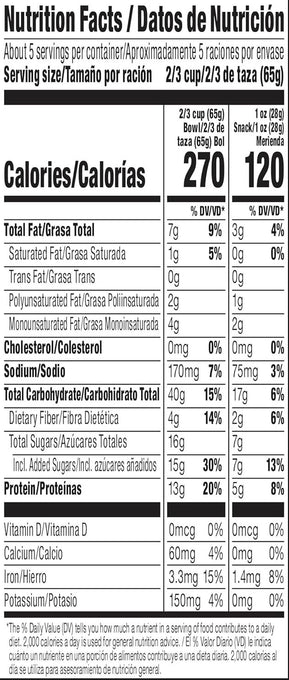 Ingredients: Whole Grain Oats, Sugar, Soy Protein Isolate, Canola And/or Sunflower Oil, Tapioca Syrup, Molasses, Rice Starch, Soy Lecithin, Baking Soda, Salt, Natural Flavor. Vitamin E (Mixed Tocopherols) Added To Preserve Freshness.