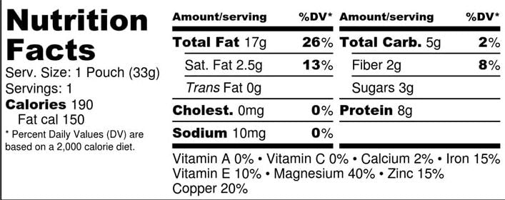Ingredients: Organic Pumpkin Seeds, Organic Expeller Pressed Sunflower Oil, Organic Powdered Sugar(Organic cane Sugar, Organic Tapioca Starch), sea Salt.