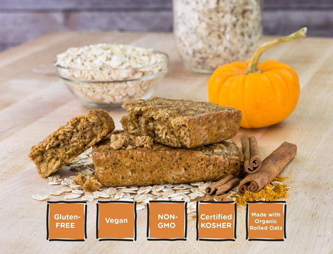 Ingredients: ORGANIC WHOLE GRAIN ROLLED OATS, BROWN RICE SYRUP, ORGANIC COCONUT OIL, ORGANIC CANE SUGAR, PUMPKIN, VEGETABLE GLYCERIN, XANTHAN GUM, SEA SALT, CINNAMON, CLOVES, VITAMIN E (FOR FRESHNESS). MAY CONTAIN TRACES OF TREE NUTS OR PEANUTS.