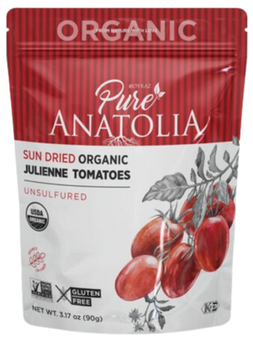 These sun-dried tomatoes are perfect for adding to a pasta dish, or pesto. Try adding to a grain salad or even blending into a dressing. Pure Anatolia sun-dried tomatoes are organic, gluten free and unsulfured.