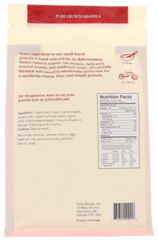 Terra Breads is known for its commitment to crafting wholesome, delicious products using only the finest ingredients. Pure Crunch Granola offers a simple yet satisfying blend of organic oats and seeds, roasted to perfection for a delightful crunch.