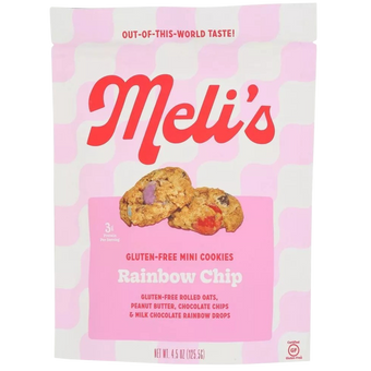 Ingredients: Gluten-Free Rolled Oats, Brown Sugar, Sugar, Milk Chocolate Rainbow Drops (Milk Chocolate Center [Evaporated Cane Sugar, Unsweetened Chocolate, Cocoa Butter, Whole Milk Powder, Soy Lecithin [an Emulsifier], Natural Vanilla], Colored Shell [Evaporated Cane Sugar, Rice Starch, Gum Arabic, Tapioca Dextrin, Carnauba Wax, Natural Food Colorings [Vegetable Juice Colors)]), Chocolate Chips (Sugar, Unsweetened Chocolate, Cocoa Butter, Soy Lecithin, Natural Vanilla Extract), Baking Soda, Natural Vanilla Powder (Dextrose, Vanilla), Salt.