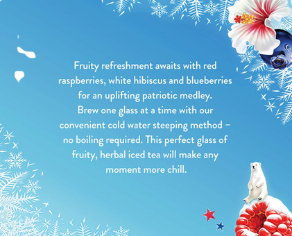 • Fruity Medley: A patriotic mix of raspberry, white hibiscus, and blueberry for a bright, uplifting flavor.