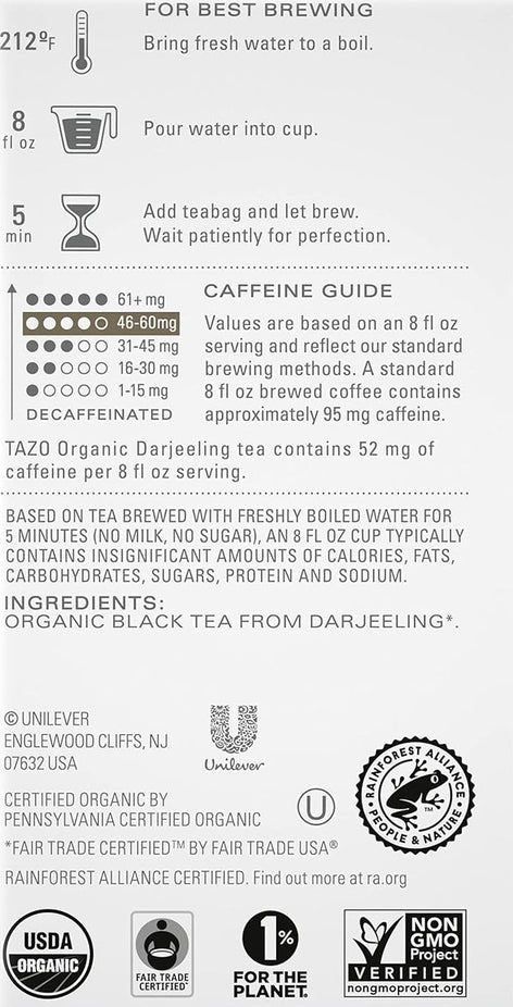 Tazo Regenerative Organic Darjeeling (16 CT) offers a refined tea experience with a commitment to sustainability. Sourced from organic farms, this Darjeeling tea features the delicate flavor of black tea paired with floral and fruity notes. Each cup provides a moment of tranquility and enjoyment, making it an ideal choice for tea enthusiasts who value both taste and environmental responsibility.