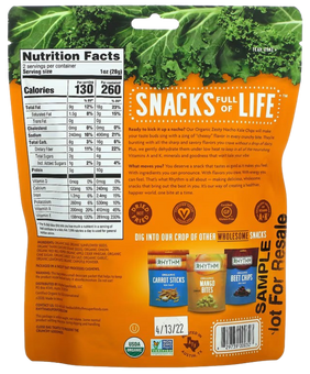 Ready to kick it up a nacho? Our organic zesty nacho kale chips make your taste buds sing with a zing of “cheesy” flavor in every crunchy bite. They’re bursting with all the sharp and savory flavors you crave without a drop of dairy. Plus, we gently dehydrate them under low heat to keep in all of the nourishing vitamins a and k, minerals and goodness that won’t kale your vibe.