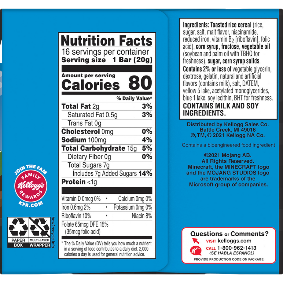 Minecraft is bringing the adventurous spirit of its popular game to snack time. Kellogg's Rice Krispies Treats Minecraft Creeper Edition are an irresistible treat that's sure to satisfy.