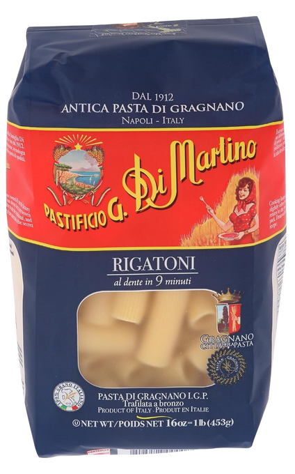 Di Martino Rigatoni Pasta showcases the finest quality with its use of 100% Italian durum wheat flour from Gragnano, Italy, a region celebrated for its pasta-making heritage.