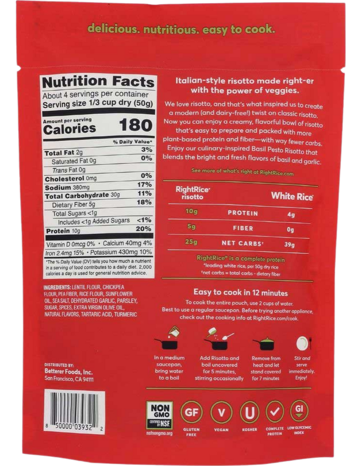 - DELICIOUS, NUTRITIOUS, DAIRY-FREE RISOTTO: With 10 grams of complete, plant-based protein and 5 grams of fiber, RightRice Risotto means you can enjoy a deliciously creamy, protein-packed, fiber-loaded bowl of dairy-free risotto (with way less carbs) any night of the week.