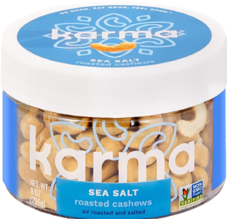 AIR ROASTED WITHOUT OIL: Skip the oil-fried cashews. Karma Nuts "skin-less" cashews are air roasted as a healthier, tastier alternative while still maintaining that delicious buttery taste.