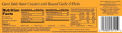 The Roasted Garlic and Herbs Table Water Crackers are delicately crisp and infused with bold garlic and herb flavors.
