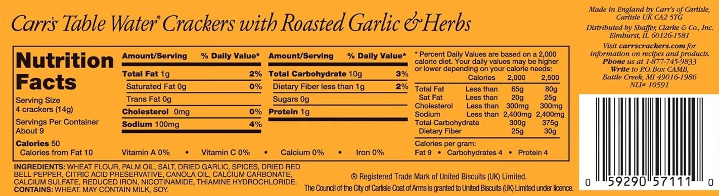 - Made with Carr’s commitment to premium quality and distinctive taste.