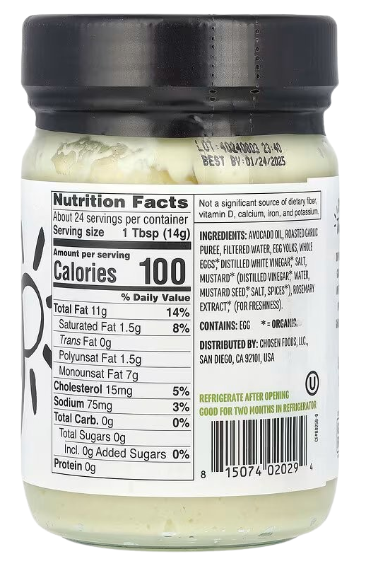 Chosen Foods Roasted Garlic Mayo offers a creamy, flavorful twist to elevate your favorite meals.