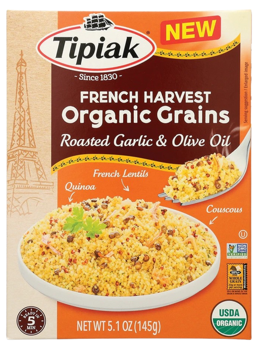 Ingredients: Organic Couscous (Durum Wheat Semolina*), Organic Whole Wheat Couscous (Whole Durum Wheat Semolina*), Organic Garlic (Garlic*, Roasted Garlic*), Salt, Organic French Green Lentils, Organic Olive Oil, Organic Red Quinoa, Organic Onion (Onion*, Roasted Onion*), Yeast, Organic Parsley, Organic Herbes De Provence (Rosemary*, Thyme*, Savory*, Basil*, Marjoram*), Organic Sunflower Oil, Organic Turmeric.