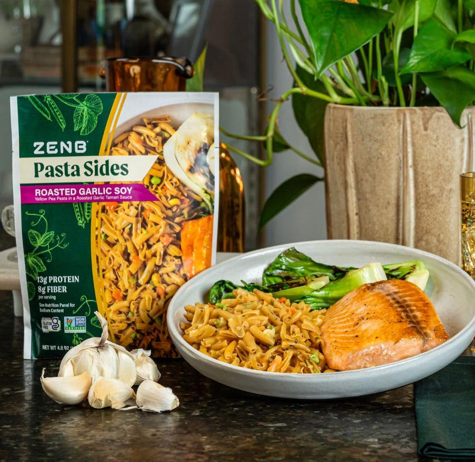 ZENB’s Roasted Garlic Soy Pasta Side (8 Pack) offers a bold, umami-rich flavor experience paired with the wholesome power of yellow pea pasta.