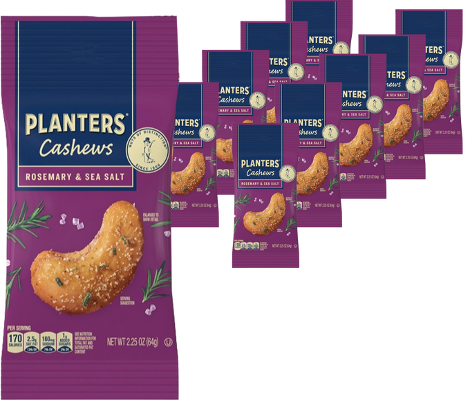 Ingredients: Cashews, Peanut Oil, Sugar, Contains 2% Or Less Of Sea Salt, Rosemary, Garlic Powder, Onion Powder, Paprika, Silicon Dioxide (Anticaking Agent), Spices.