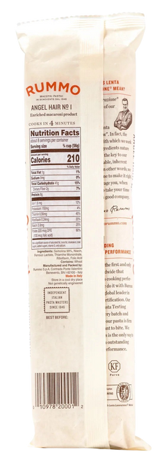 Angel Hair is a delicate, traditional shape of pasta requiring careful and attentive preparation. It’s ideal served with fresh tomato sauces, in broth, or simply with butter and sage.