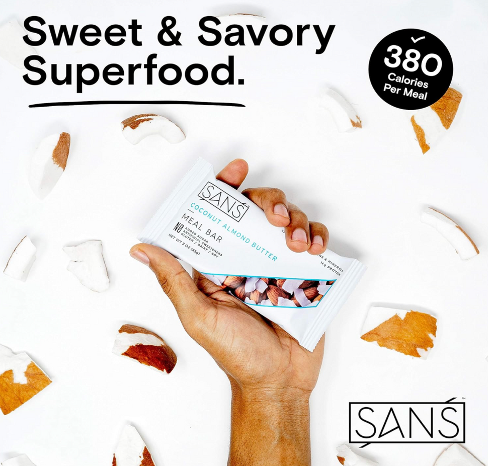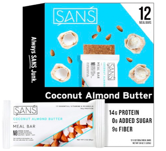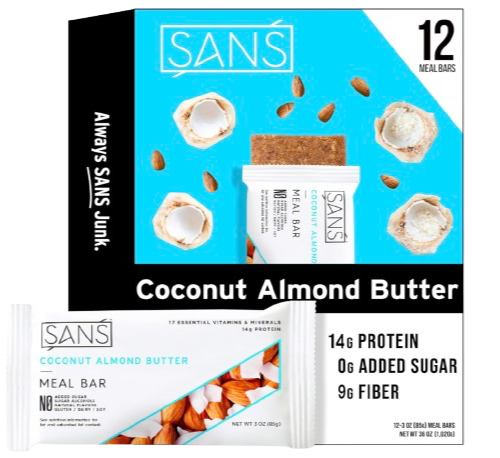Smooth almond butter, dates, and crunchy almonds unsweetened coconut (and a hint of cinnamon). If you love a savory bar with just the right amount of sweet.
