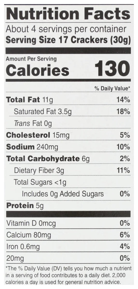 Ingredients: Almond Flour, Egg White, Butter (Cream), Coconut Flour, Cream Cheese (Milk, Cream, Salt, Carob Bean Gum, Cheese Culture), Flaxseeds, Aluminum-Free Baking Powder, Water, Xanthan Gum, Sea Salt, Black Pepper, Garlic, Rosemary, Onion.