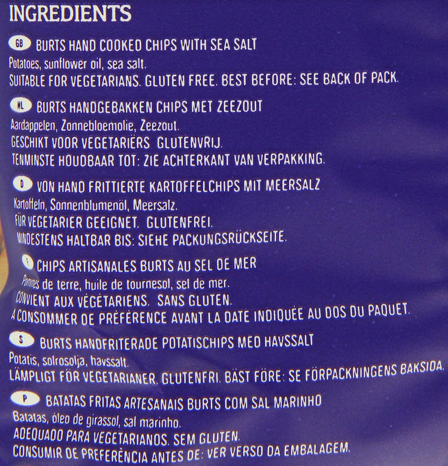 Ingredients: Popatoes, Sunflower oil, sea salt.