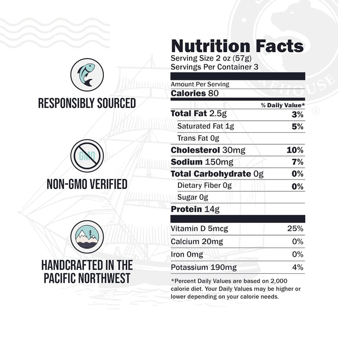 Ingredients: Smoked Salmon (Sockeye Salmon, Salt, Cane Sugar, and Natural Wood Smoke).