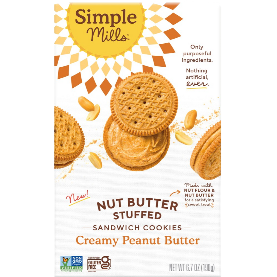 Simple Mills Peanut Butter Sandwich Cookies feature a perfect blend of lightly-sweetened, crispy cookies and a creamy nut butter filling for a satisfying treat.