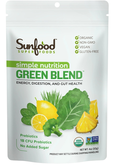 Ingredients: Simple Nutrition Green BlendTM (wheat grass juice powder*, barley grass juice powder*, spinach powder*, kale powder*, broccoli powder*), pineapple juice powder*, lemon juice powder*, Jerusalem artichoke inulin*, sea salt, natural flavor*, Bacillus coagulans GBI-30, 6086®, stevia powder*.