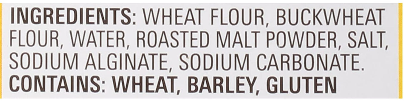 Ingredients: Wheat Flour, Buckwheat Flour, Water, Roasted Malt Powder, Salt, Sodium Alginate, Sodium Carbonate.
