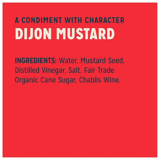 Ingredients: Water, Mustard Seed, Distilled Vinegar, Salt, Fair Trade Organic Cane Sugar, Chablis Wine.