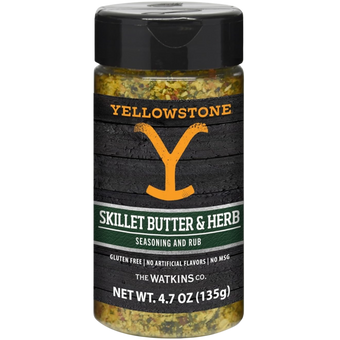 Yellowstone Skillet Butter & Herb Seasoning and Rub delivers a savory blend of butter, garlic, and herbs perfect for elevating any dish.