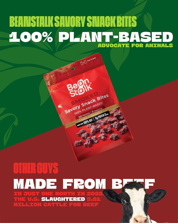 Enjoy the delicious taste of Beanstalk Brands Smoked Flavor Jerky, a perfect plant-based snack for any occasion.