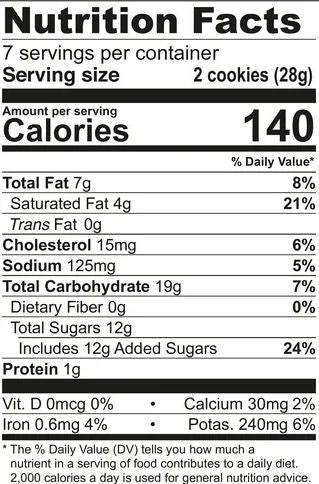Ingredients: Unbleached Flour (Wheat Flour, Niacin, Reduced Iron, Thiamine Mononitrate, Riboflavin, Folic Acid, Malted Barley Flour), Butter, Sugar, Brown Sugar, Egg Whites, Natural Flavor, Milk, Cinnamon, Baking Powder (Corn Starch, Baking Soda, Calcium Phosphate), Salt, Cream Of Tartar. Contains: Wheat, Milk, Eggs And Soy. May Contain: Nuts
