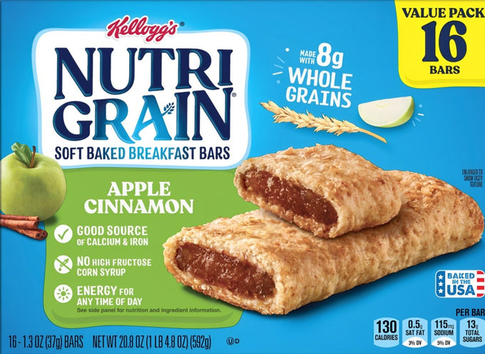 Ingredients: Crust: Whole Grain Oats, Enriched Flour (Wheat Flour, Niacin, Reduced Iron, Vitamin B1 [thiamin Mononitrate], Vitamin B2 [riboflavin], Folic Acid), Soybean Oil, Whole Wheat Flour, Dextrose, Fructose, Sugar, Calcium Carbonate, Vegetable Glycerin, Invert Sugar, Whey, Soluble Corn Fiber, Cellulose, Salt, Natural Flavor, Potassium Bicarbonate, Cinnamon, Vitamin Blend (Salt, Niacinamide, Vitamin B1 [thiamin Hydrochloride], Vitamin B6 [pyridoxine Hydrochloride], Vitamin B2 [riboflavin], Vitamin D3, Vitamin B12), Wheat Bran, Mono- And Diglycerides, Soy Lecithin, Wheat Gluten, Carrageenan, Iron, Guar Gum, Filling: Invert Sugar, Corn Syrup, Vegetable Glycerin, Apple Puree Concentrate, Sugar, Sodium Alginate, Modified Food Starch, Sodium Citrate, Lemon Juice Concentrate, Methylcellulose, Citric Acid, Dicalcium Phosphate, Cinnamon.