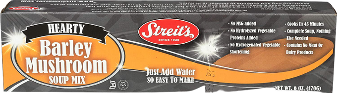 Ingredients: Barley, Green & Yellow Peas, Dextrose, Salt, Mushrooms, Onions, Carrots, Olive Oil, Natural Flavor, Turmeric.