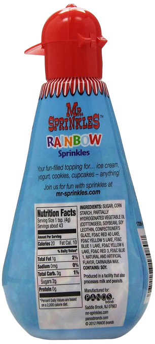 Ingredients: Sugar, Corn Starch, Partially Hydrogenated Vegetable Oil (Cottonseed, Soybean), Soy Lecithin, Confectioner'S Glaze, Fd&C Red 40 Lake, Fd&C Yellow 5 Lake, Fd&C Blue 1 Lake, Fd&C Yellow 6 Lake, Fd&C Red 3, Fd&C Blue 1, Natural And Artiificial Flavor, Carnauba Wax.