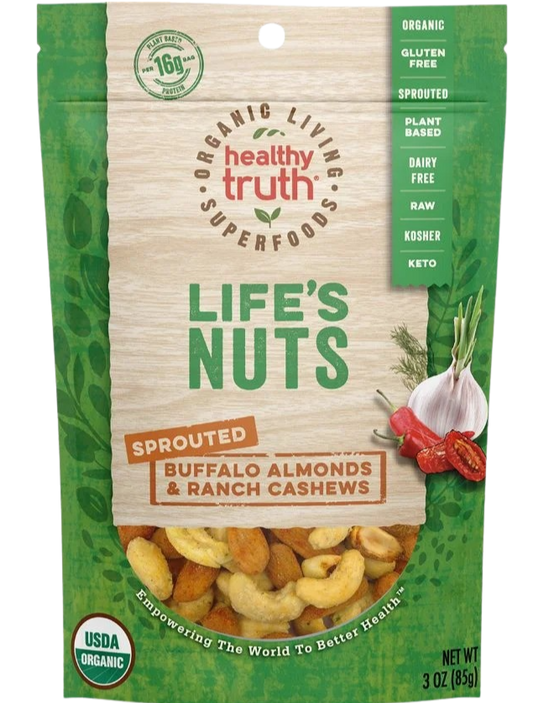 Ingredients: Sprouted Cashews, Sprouted Almonds, Coconut Vinegar, Apple Cider Vinegar, Olive Oil, Sun-Dried Tomatoes, Coconut Nectar, Dates, Dill, Lemon Juice, Onion Powder, Scallions, Pink Crystal Salt, Cayene Powder, Garlic Powder, Habanero Powder.
