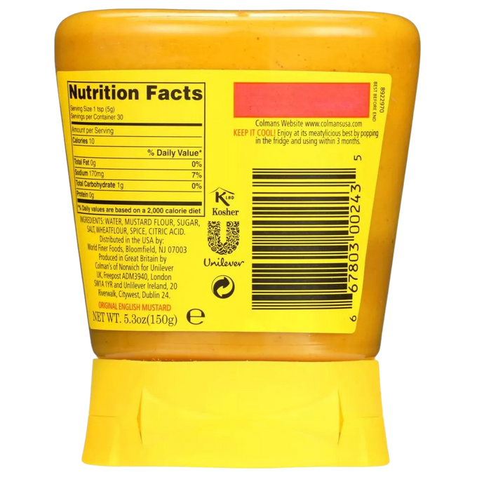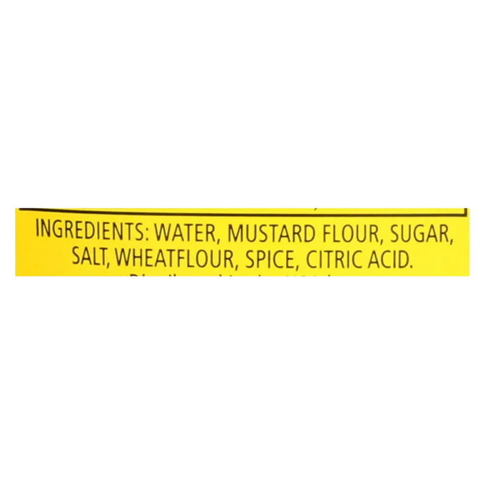 Ingredients: Water, Mustard Flour, Sugar, Salt, Wheatflour, Spice, Citric Acid.