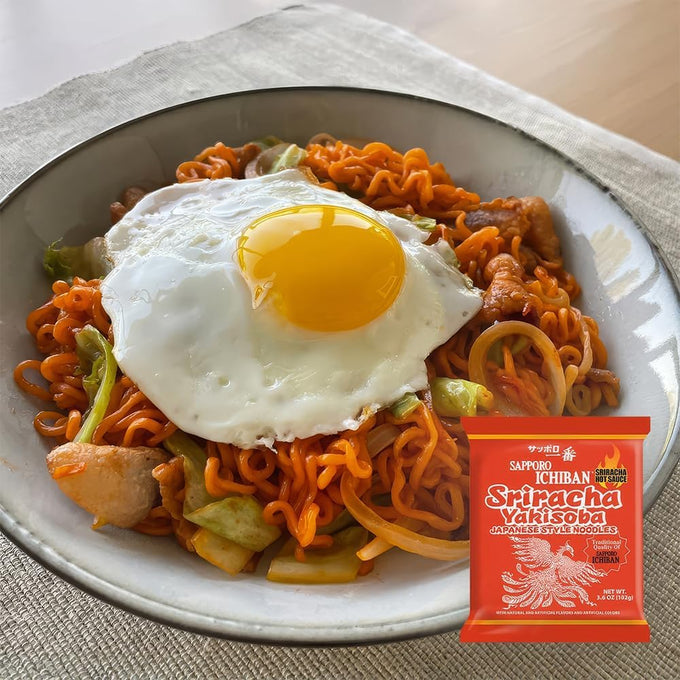 - Features authentic Japanese-style noodles with a bold sriracha kick