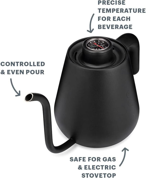 Gooseneck spout allows controlled, slow pours for perfect coffee or tea extraction