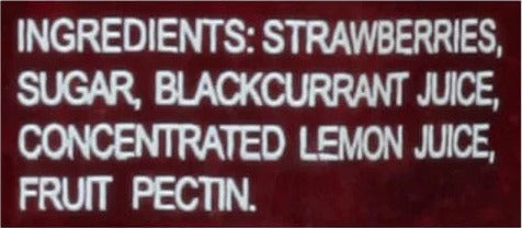 Ingredients: Strawberries, Sugar, Blackcurrant Juice, Concentrated Lemon Juice, Fruit Pectin.
