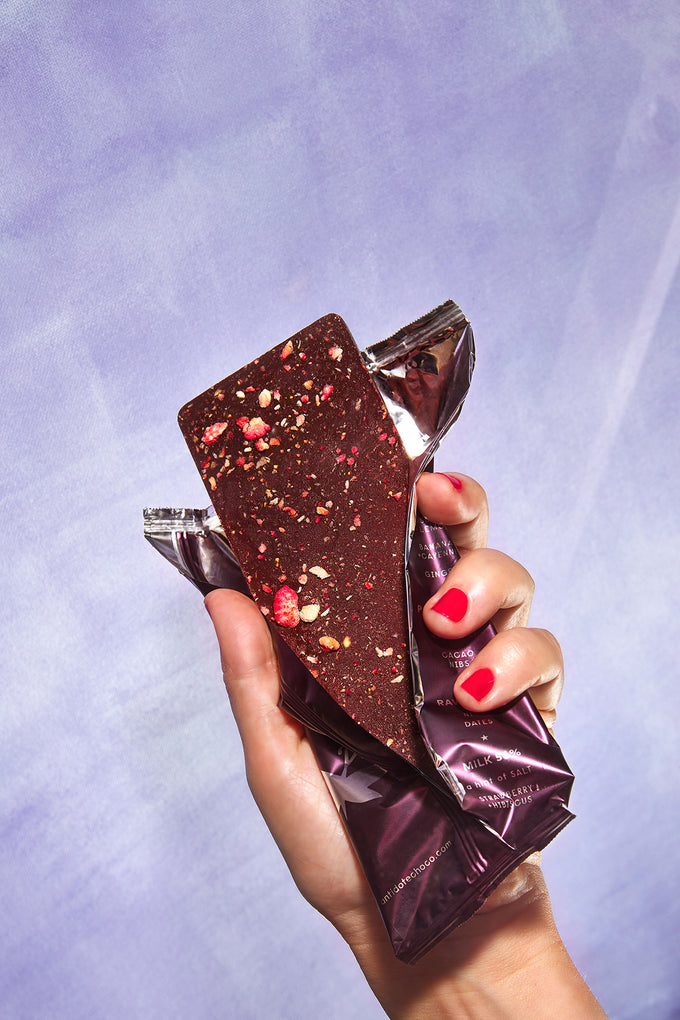 Elevate your chocolate experience with Antidote’s Strawberry + Hibiscus Chocolate Bar, where bold flavors meet refined craftsmanship.