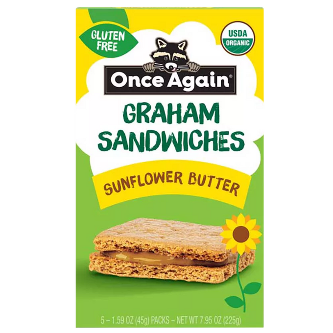 Once Again Sunflower Butter Graham Sandwiches combine crunchy gluten-free graham crackers with creamy organic sunflower butter for a deliciously satisfying, nut-free snack.