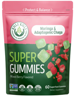 Ingredients: Organic Moringa Leaf Powder, Chaga Mushroom Powder, Organic Tapioca Syrup, Organic Cane Sugar, Water, Pectin, Citric Acid, Natural Flavors.
