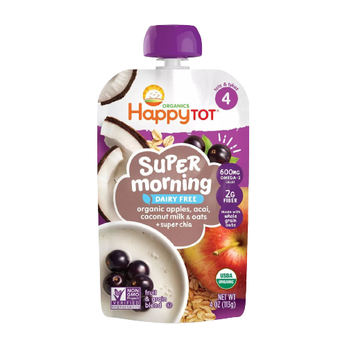 Happy Tot Super Morning Organic Apples, Acai, Coconut Milk, Oats + Super Chia Baby Pouch